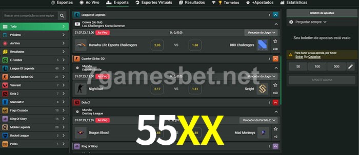 O 55XX oferece uma grande seleção de opções de apostas em e-sports com probabilidades competitivas